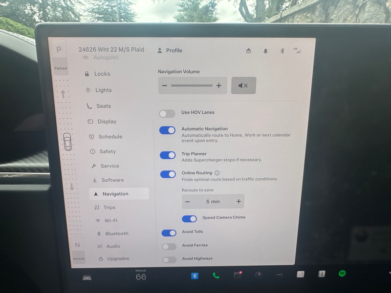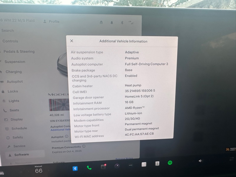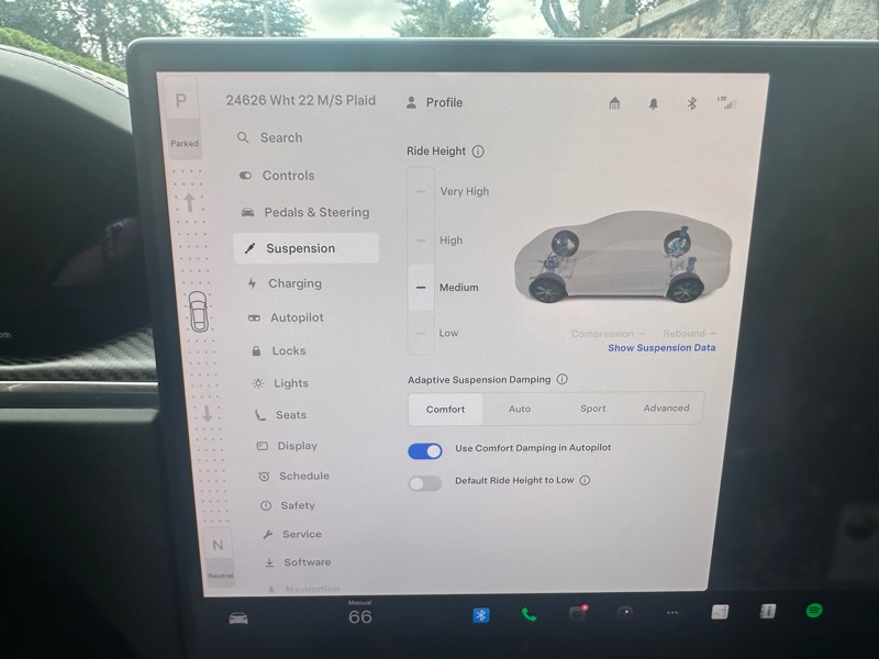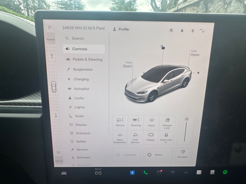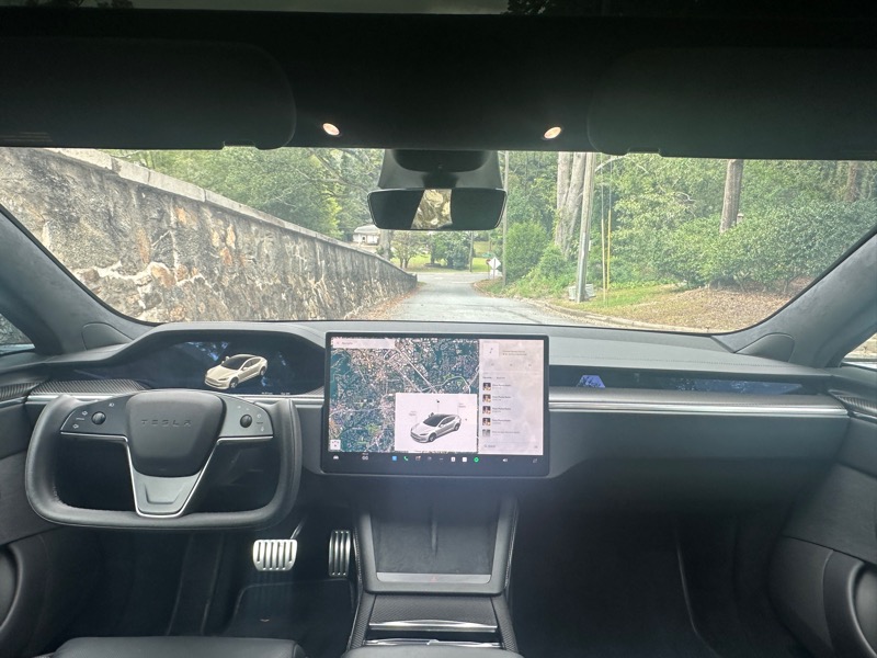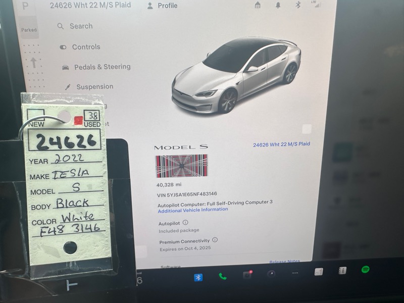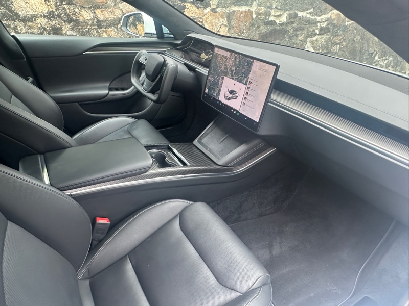 MODEL S PLAID; 19" BLACK TEMPEST ALLOY WHEELS; CARBON FIBER SPOILER; AUTOPILOT; SUBSCRIBE TO FSD; NAVIGATION SYSTEM; HEATED AND COOLED SEATS; GLASS MOONROOF; DUAL ZONE CLIMATE CONTROL; FIXED GLASS MOONROOF; TRI-MOTOR AWD; ADAPTIVE SUSPENSION; BLUETOOTH HANDSFREE