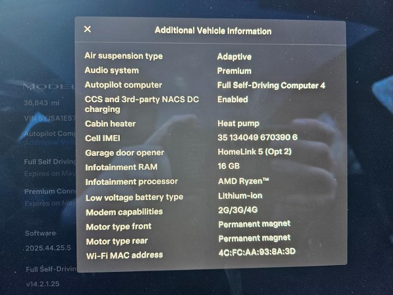Hardware 4; Premium Audio; HomeLink5; AMD Ryzen; 16GB RAM; Heated/Cooled Seats; Heated Steering YOKE; Heat Pump; AI GROK