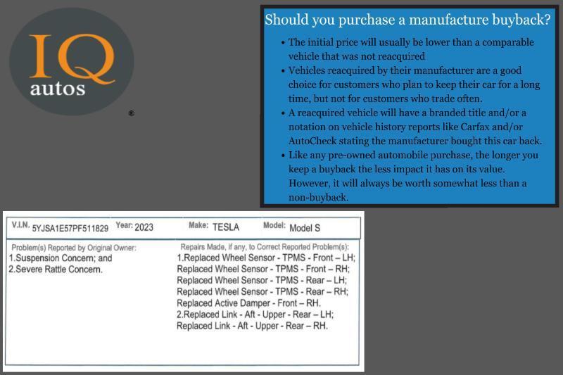 Regarding Carfax and the title, buyback vehicles are titled under the manufacturer’s name with a notation like Branded title: Manufacturer Buyback/Lemon. Companies like Carfax and AutoCheck that provide vehicle history reports will report this, but these vehicles are not classified as salvage or rebuilt. Most buybacks come from states with strong lemon laws, like California.