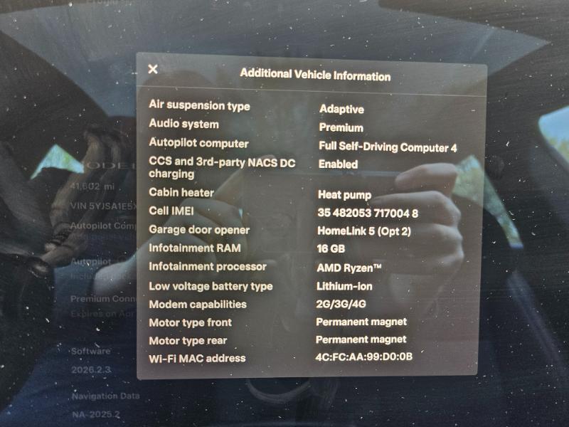 HARDWARE 4; PREMIUM AUDIO; AUTO PILOT; HEATED/COOLED SEATS; HEATED STEERING WHEEL; 16GB RAM; AMD RYZEN; HEAT PUMP; AI GROK; HOMELINK 5