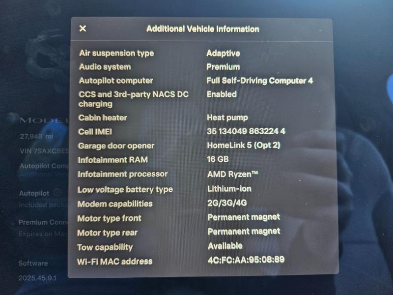 HARDWARE 4; PREMIUM AUDIO; HOMELINK5; HEATED/COOLED SEATS; HEATED STEERING YOKE; 6 SEATER; AMD RYZEN; AUTO PILOT; 16GB RAM; HEAT PUMP; 3RD ROW; AI GROK; 2ND ROW CAPTAIN CHAIRS