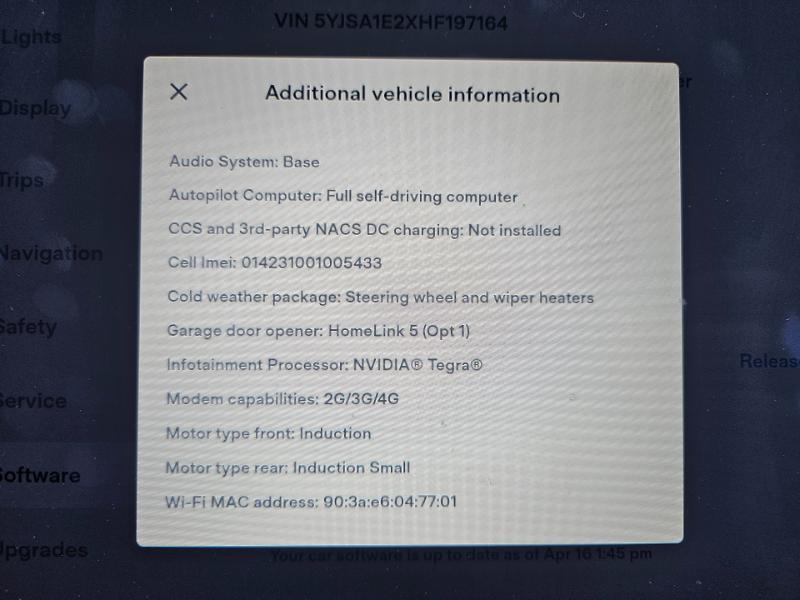 17 INCH SCREEN; AUTO PILOT; HEATED SEATS; COLD WEATHER PKG; HOMELINK 5; ASH WOOD DECOR; PREMIUM LEATHER TESLA SEATS
