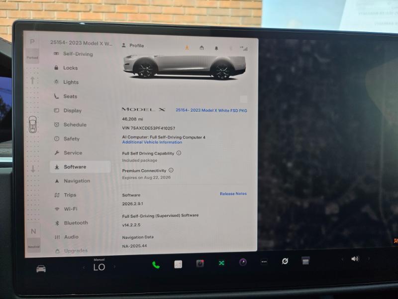 MODEL X ALL-WHEEL DRIVE; HARDWARE 4; FULL SELF DRIVING INCLUDED PKG; 5-SEATER; TOW PACKAGE; FULL SELF DRIVING COMPUTER 4; AUTOPILOT; TRAFFIC-AWARE CRUISE CONTROL; AUTOSTEER; REAR MEDIA SCREEN; 20-INCH BLACK CYBERSTREAM WHEELS; YOKE SW; PREMIUM SOUND; HEATED/COOLED SEATS; GROK AI; 3-DAY $BACK GUARANTEE; FALCON DOORS; AMD RYZEN INFOTAINMENT PROCESSOR; ADAPTIVE SUSPENSION; HEAT PUMP; HOMELINK GARAGE DOOR OPENERS; NAVIGATION SYSTEM; REAR BACKUP CAMERA; BLUETOOTH HANDSFREE; SIDE CAMERAS; BLIND SPOT; LANE DEPARTURE; ADAPTIVE CRUISE CONTROL; WIRELESS PHONE CHARGING; DUAL ZONE CLIMATE CONTROL; DUAL POWER SEATS; LED HEADLIGHTS; APPLE MUSIC; SPOTIFY; NETFLIX; BLACK INTERIOR; PEARL WHITE EXTERIOR; WE ACCEPT TRADES; FINANCING AVAILABLE; EXTENDED MECHANICAL PROTECTION PLANS AVAILABLE; DELIVERY AVAILABLE; TESLA EST. WARRANTY THRU SEPT 2027 OR 50K AND TESLA EST. BATTERY WARRANTY THRU SEPT 2031 OR 150K MILES